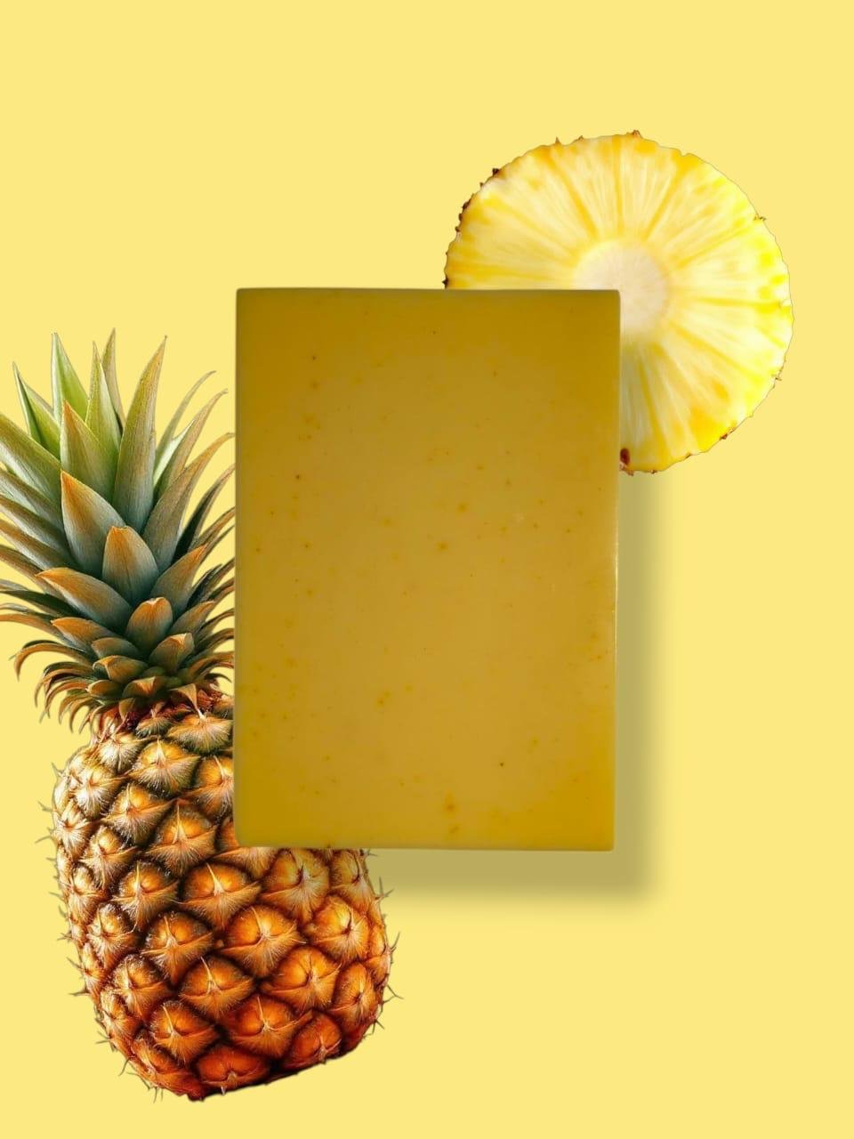 Donkey Milk & Pineapple Soap. Enriched with the nourishing properties of donkey milk, renowned for its ability to hydrate, soften, and rejuvenate the skin, this soap helps restore moisture balance while promoting a youthful glow. The fresh pineapple extract works as a natural exfoliant, gently removing dead skin cells, brightening your complexion, and leaving your skin feeling revitalized.